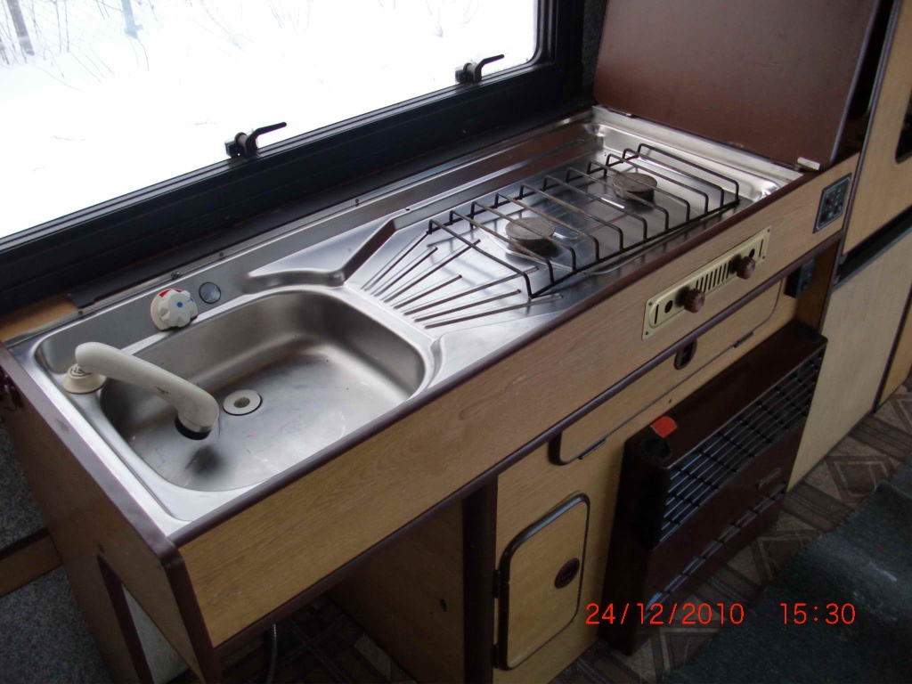 Кухонный модуль (газ. Плита 2-х конфорочная, мойка - нерж.сталь, дер. крышки)